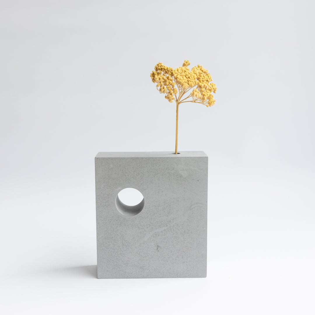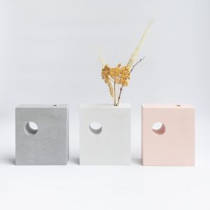 The blocks are designed for single stem or small bunches of flowers or plants, dried or fresh. The pigmented jesmonite is lightly sealed – any water will darken and then dry out over time, developing a beautiful patina.