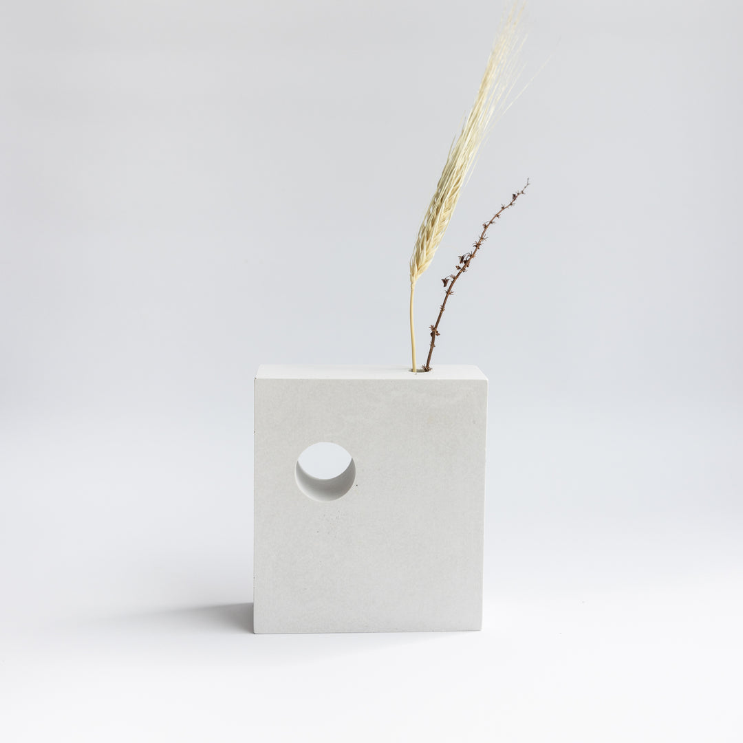 The blocks are designed for single stem or small bunches of flowers or plants, dried or fresh. The pigmented jesmonite is lightly sealed – any water will darken and then dry out over time, developing a beautiful patina.